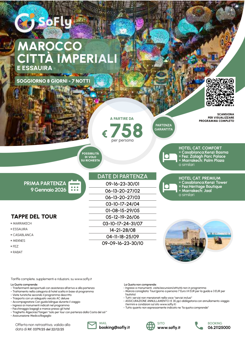 Tour Marocco Città Imperiali ESSAOUIRA a partire da € 758 a persona