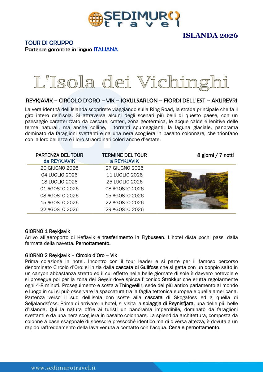 L’Isola dei Vichinghi da Reykjavik 8 giorni