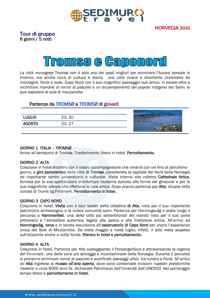 Tromso e Caponord da Tromso 6 giorni
